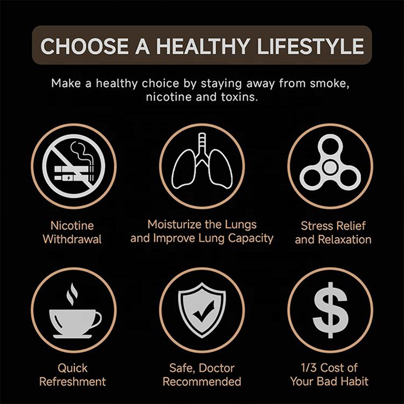 Simply inhale through the device to enjoy soothing aromatherapy from natural essential oils—helping you relieve stress, improve focus, and enhance your mood, safely and naturally. Each Device includes a Mini Cleaning Kit and a Habit Tracker, empowering you to seamlessly adopt this healthy habit into your daily life.
