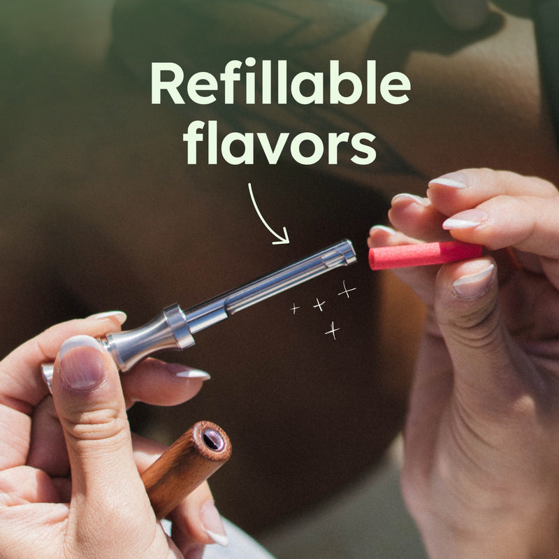 Physiology shows stopping a bad habit cold turkey is very hard on your brain. Aura works by replacing your hand-to-mouth fixation, calming nervous tension through fidgeting, and distracting you from your bad habit with delicious flavor.