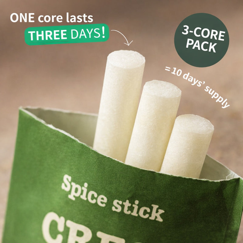 1 Core lasts you 2-3 days of repeated use and each Core pack comes with 3 flavored cores. The Complete Core Bundle Journey Pack comes with enough Core packs to last you approximately 1 month of repeated use.