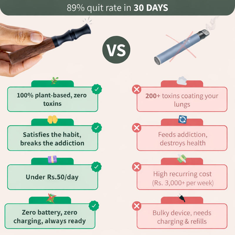 Our most premium offering yet, the Aura Device – Niko Armani, redefines your wellness and breathing experience. Crafted from luxurious black walnut wood with an ultra-smooth onyx-black mouthpiece, it provides a completely healthy, nicotine-free alternative to vaping.